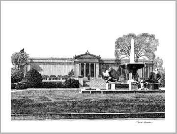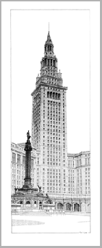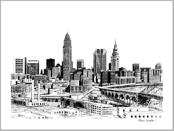 Pen & Ink Drawings of Cleveland, Ohio. Skyline, Terminal Tower, West Side Market, Cleveland Museum of Art,